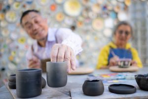 Glaze is the last conversation between the artist and object. It’s a combination of powder mixed with water that is applied, and then in the kiln, it becomes a shiny, glassy surface, a flat, matte finish, or forms crystals. It’s an element of unpredictability, but it also tells the truth. It reveals every decision you made leading up to it, how thick or thin you applied it, how you poured it, how you handled the object while it dried. You can’t always predict what the surface will look like in its raw state, and sometimes it surprises you. If you’re hasty in your application, it will crawl, pit, or deaden the object.